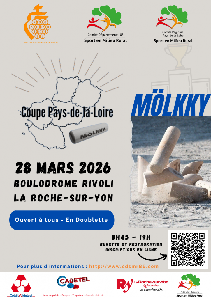 La Coupe Pays de La Loire est une compétition ouverte à tous, licenciés ou non licenciés à la FNSMR, de tous les âges et de tous les niveaux. Elle se joue en doublette, les équipes se font librement. La compétition vise à élire la meilleure doublette de la Région.